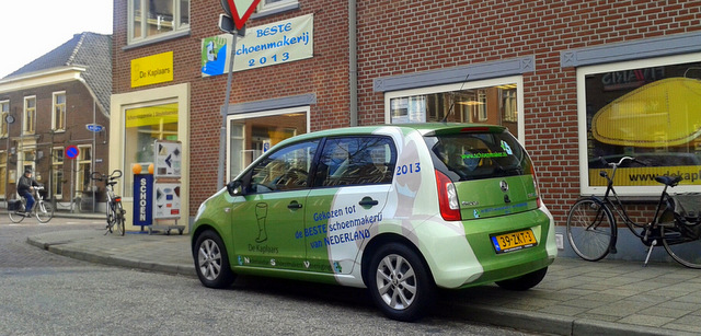 Schoenmakerij De Kaplaars uit Aalten werd afgelopen maandag uitgeroepen tot Beste Schoenmakerij van Nederland. Een jaar lang mag hij in een Skoda Citigo, voorzien van zijn eigen logo, rondrijden.